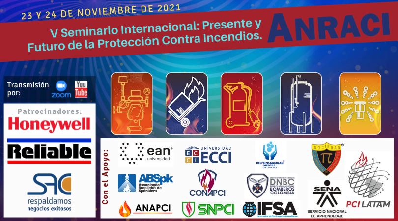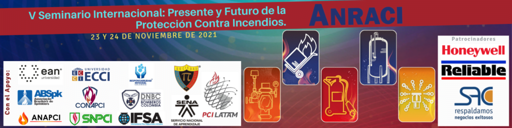 V Seminario PCIV Seminario: Presente y Futuro de la Protección Contra Incendios.ANRACI realizó el V Seminario: Presente y Futuro de la Protección Contra Incendios, evento que se ha convertido en insignia de la Asociación, y que se ha venido desarrollando anualmente durante los últimos cinco años.Esta actividad se efectuó los días 23 y 24 de noviembre de 2021, fue un evento digital sin costo de acceso, donde la comunidad tuvo la oportunidad de ampliar sus conocimientos frente al riesgo de incendio y a las correspondientes tecnologías que existen para mitigarlo.Aliados del Certamen.El V Seminario: Presente y Futuro de la Protección Contra Incendios contó con el apoyo de importantes instituciones que apuestan por la prevención como el mejor camino para evitar los nocivos efectos causados por los incendios. A continuación, tenemos el honor de presentar a nuestros aliados institucionales:Organizaciones Académicas de Apoyo.Servicio Nacional de Aprendizaje – SENA.Mesa Sectorial de Mantenimiento – SENA.Universidad ECCI.Universidad EAN.Organizaciones de Apoyo del Orden Nacional.Dirección Nacional de Bomberos de Colombia – DNBC.Sociedad Colombiana de Ingenieros – SCI.Responsabilidad Integral Colombia.Organizaciones de Apoyo del Orden Internacional.International Fire Suppression Alliance – IFSARed Latinoamericana de Protección Contra Incendios – RED Latam PCI.Conapci – México.Anapci – Chile.ABSpk – Brasil.SNPCI – Perú.Presentación General.El V Seminario: Presente y Futuro de la Protección Contra Incendios se llevó a cabo en el marco de la celebración del Sexto Aniversario de fundación de ANRACI, y se constituye como un espacio especializado en el que tuvimos ponentes de primer nivel, que compartieron con los asistentes sus conocimientos en materia de protección contra incendios abordando temáticas de actualidad, y dando una gran profundidad técnica acerca de aspectos importantes relacionados con el desarrollo de los proyectos propios de nuestra industria.Sin lugar a duda, garantizar un nivel adecuado de protección se constituye como un reto para propietarios, administradores, agentes de mantenimiento, constructores, y por supuesto para los actores propios del sector (consultores, diseñadores, instaladores, interventores, etc.), puesto que los riesgos y las estructuras modernas requieren la aplicación de tecnologías acordes con el desarrollo de la ingeniería actual.Es necesario que los profesionales que intervienen en este tipo de proyectos amplíen su panorama, abordando los problemas de una manera holística, contemplando todas las aristas de la situación, para garantizar que el resultado final sea coherente con los niveles mínimos de seguridad que los usuarios requieren.De esta forma, el Seminario promovió la adopción de Buenas Prácticas en los procesos asociados a la protección contra incendios. Adicionalmente, se incentivó el adecuado uso de las normas aplicables de acuerdo con los riesgos existentes como una metodología comprobada para proteger adecuadamente a las personas y a los bienes.Tal como es conocido por todos, la Protección Contra Incendios Salva Vidas, Protege los Bienes y Garantiza la continuidad de las Operaciones!Objetivos.El Seminario tiene como objetivo promover la excelencia técnica en cada una de las etapas asociadas con el diseño, instalación, inspección, pruebas, puesta en marcha y mantenimiento de los sistemas de protección contra incendios.Con este Seminario contribuimos en el proceso de formación de las personas que hoy día realizan actividades relacionadas con la protección contra incendios.De manera especial, el Seminario ayuda en la conceptualización del riesgo de incendios, con la finalidad de que los usuarios tengan mejores elementos de juicio para tomar sus decisiones y se protejan de una mejor forma frente al Fuego.Memorias al Seminario.Te invitamos a volver a vivir nuestro seminario!A continuación encontrarás el video de las sesiones 1 y 2 del evento.Sesión 1. Sesión 2. Agenda Académica.Sesión 1.23 de Noviembre de 2021.InicioFinNombre de la ActividadTipo de ActividadResponsable3:25 p. m.3:30 p. m.Acceso a la PlataformaIngresoParticipantes3:30 p. m.3:40 p. m.Inauguración y Bienvenida al Seminario.Saludo BienvenidaANRACI.3:40 p. m.4:20 p. m.Generalidades de Protección Pasiva Contra Incendios en la Industria.Conferencia Ing. Juana Andrea Ramírez. Ing. Claudio Poo. PROMAT4:20 p. m.4:25 p. m.IntermedioIntermedioANRACI.4:25 p. m.5:05 p. m.Detección y Alarma en la IndustriaConferenciaIng. Matías Trombetta. HONEYWELL5:05 p. m.5:10 p. m.IntermedioIntermedioANRACI.5:10 p. m.5:50 p. m. Sistemas de Protección Pasiva en la Industria.ConferenciaIng. Zuleima Diaz. KINGSPAN.5:50 p. m.5:55 p. m.IntermedioIntermedioANRACI.5:55 p. m.6:35 p. m.Sistemas de Ventilación para Protección Contra Incendios En La Industria.ConferenciaIng David Ossa. SODECA LATAM.6:35 p. m.6:40 p. m.IntermedioIntermedioANRACI.6:40 p. m.7:20 p. m.Corrosión en la Instalaciones Contra Incendios En La Industria.ConferenciaIng. Leandro Vera. SPCI.7:20 p. m.7:25 p. m.IntermedioIntermedioANRACI.7:25 p. m.8:05 p. m.Protección con Sistemas Especiales Contra Incendios En La Industria.ConferenciaIng. Daniel Peña. SEVO SYSTEM8:05 p. m.8:10 p. m.Despedida y Cierre Primera Sesión de Actividades.Despedida Sesión 1ANRACI.Sesión 2.24 de Noviembre de 2021.InicioFinNombre de la ActividadTipo de ActividadResponsable3:25 p. m.3:30 p. m.Acceso a la Plataforma.IngresoParticipantes3:30 p. m.3:40 p. m.Bienvenida a la Segunda Sesión del Seminario.Saludo BienvenidaANRACI.3:40 p. m.4:20 p. m.Soportería Sismo Resistente para Protección Contra Incendios En La IndustriaConferenciaIng. Luis Marquez. LOOS & CO4:20 p. m.4:25 p. m.Intermedio.IntermedioANRACI.4:25 p. m.5:05 p. m.Protección Contra Incendios – Equipos Eléctricos en la Industria.ConferenciaIngeniero Alex Rodríguez. AGNIS5:05 p. m.5:10 p. m.Intermedio.IntermedioANRACI.5:10 p. m.5:50 p. 