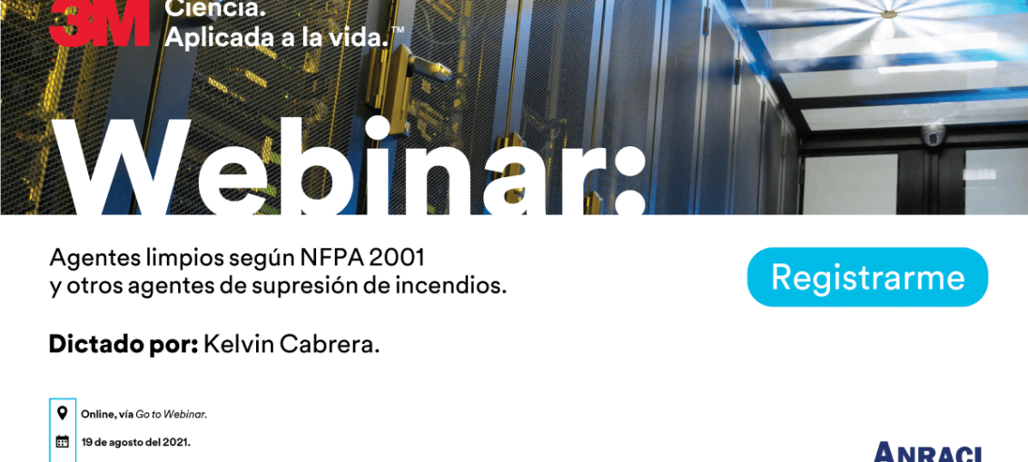 Agentes Limpios Según NFPA 2001 y Otros Agentes de Supresión de IncendiosBlogEventos por ANRACI - 4 agosto 202125 agosto 2021 3M, con el apoyo de ANRACI, realizará el Webinar: Agentes Limpios Según NFPA 2001 y Otros Agentes de Supresión de Incendios, evento que se llevará a cabo el 19 de agosto de 2021.La actividad se desarrollará en el horario comprendido entre las 2.00 pm y las 3.30 pm. (Hora Local Colombia)Memoria.A continuación, encontrarás el Webinar en su totalidad, podrás revivirlo cada vez que lo necesites! Speaker.El Webinar será desarrollado bajo el liderazgo del Ingeniero Kelvin Cabrera, Key Account Manager for Latin America de 3M Novec™.Kelvin es experto en el fluido de protección contra incendios Novec 1230.En su trabajo y producto de su constante contacto con ingenieros y arquitectos, identifica las necesidades del mercado y contribuye con el desarrollo de proyectos que mejoran la seguridad de las personas siendo amigables con el ambiente.Información Adicional.Para más información, te invitamos a comunicarte con nosotros al Cel/WhatsApp 3502986026 o a través del correo electrónico anraci@anraci.org. Compartir en Facebook Compartir Compartir en TwitterTweet Compartir en Linkedin Compartir