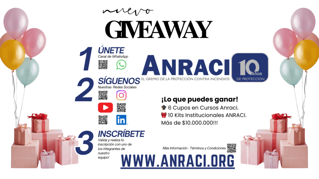 BlogFire Expo Latam por ANRACI - 27 septiembre 202515 octubre 2025Con motivo de la conmemoración de los 10 años de fundación de ANRACI, y en el marco de Fire Expo Latam 2025, la Asociación ha decidido realizar un sorteo interno con los asistentes a la feria con el objetivo de fortalecer el vínculo con nuestra comunidad.Es de aclarar que este sorteo no implica venta de boletas (o similares), ni tiene fines comerciales o de lucro. Es una actividad institucional, gratuita, dirigida exclusivamente a personas que cumplan con los requisitos de participación establecidos en el Reglamento que presentaremos en esta publicación.Desarrollo de sorteo y premiación!De acuerdo con la reglamentación, llevamos a cabo nuestro sorteo, revive estos emotivos momentos:Felicitamos a nuestros ganadores:Roger Zapata Ortega.María Isabel Ramirez Flórez.Andres Robledo Ortiz.María Alejandra López.Jorge Ignacio Zapata.Carol Tatiana Valencia Pérez.PremiosSe entregará un total de 16 premios, distribuidos de la siguiente manera:Premios Académicos (6 cupos)Cada cupo corresponde a la participación gratuita en uno de los siguientes seminarios especializados organizados por ANRACI. El premio será individual, no transferible y no canjeable por otros productos o servicios. Cada participante podrá ser beneficiario de un solo premio académico.Los seminarios incluidos en el sorteo son:Seminario Internacional: Diseño de Sistemas de Rociadores Automáticos Contra Incendios.Seminario Internacional: Diseño e Instalación de Sistemas de Detección y Alarma Contra Incendios.Seminario: Talleres de Carga, Recarga y Mantenimiento de Extintores Portátiles y Rodantes.Seminario Internacional: Conceptos e Interpretación del Código Internacional de Incendios (IFC).Seminario Internacional: Diseño e Instalación de Sistemas de Protección Contra Incendios para Riesgos Extraordinarios / Especiales.Seminarios Internacionales:a. Diseño e Instalación de Sistemas de Bombeo Contra Incendios.b. Inspección, Prueba y Mantenimiento.Valor estimado de cada cupo académico: COP$1.700.000 + IVA.Kits Institucionales ANRACI (10 unidades)Cada kit incluye:1 tula institucional1 termo1 gorra conmemorativaValor estimado de cada kit: COP$50.000.Incluye servicio de entrega con cobertura nacional dentro de Colombia.Fecha y Lugar del SorteoEl sorteo interno se llevará a cabo el martes 7 de octubre de 2025, a partir de las 4:00 p.m., hora local de Colombia. La actividad será transmitida en vivo a través del canal oficial de YouTube de ANRACI, permitiendo que todos los interesados puedan seguir el desarrollo del evento en tiempo real, desde cualquier lugar.Fecha: Martes 7 de octubre de 2025Hora: 4:00 p.m. (hora local Colombia)Lugar: Transmisión en vivo a través del canal oficial de YouTube de ANRACI ColombiaRequisitos para ParticiparLa participación en el sorteo está condicionada al cumplimiento de los siguientes pasos:Unirse al canal oficial de WhatsApp de ANRACI: Unirse al Canal de WhatsApp de Anraci en este enlace.Seguir a ANRACI en las siguientes redes sociales:Cuenta de Anraci en Instagram.Página de LinkedIn de anraci.Canal de YouTube.Una persona del equipo de ANRACI validará que el participante haya cumplido con todos los requisitos anteriores, esto se realizará manualmente, donde el usuario mostrará que hace parte de las redes de la Asociación.Una vez validado, el participante recibirá acceso al formulario electrónico de inscripción.El formulario solicitará únicamente cuatro datos:Nombres y ApellidosNúmero de documento de identidadCorreo electrónicoNúmero celular.La información diligenciada debe corresponder con los datos entregados durante el registro a Fire Expo Latam.El participante deberá diligenciar correctamente la información.Al completar el formulario, se le asignará automáticamente una (1) oportunidad de ganar dentro del sorteo.ANRACI se reserva el derecho de modificar este reglamento por razones técnicas, operativas o legales, garantizando siempre la transparencia y el respeto por los participantes.Metodología del Sorteo.El sorteo se realizará en 16 rondas consecutivas, en el siguiente orden:Se sortearán primero los 6 cupos académicos.Posteriormente, se sortearán los 10 kits institucionales.No es obligatorio que el participante esté presente durante la transmisión en vivo.Los ganadores serán identificados mediante verificación de datos con la plataforma de asistencia de Fire Expo Latam 2025.Los premios serán entregados únicamente al participante registrado como ganador, sin posibilidad de transferencia, cesión o cambio de titularidad.Los kits serán enviados a la dirección que el ganador indique, siempre que esté dentro del territorio colombiano.Términos y Condiciones Generales.Este sorteo es gratuito, interno y sin ánimo de lucro. No se requiere compra ni pago alguno para participar.Al diligenciar el formulario de inscripción, el participante acepta de manera expresa la Política de Tratamiento de Datos Personales de ANRACI, conforme a la Ley 1581 de 2012 y demás normas aplicables.Los temas de los cursos no son canjeables. El curso deberá ser tomado en la fecha, condiciones y lugares que Anraci estime conveniente su realización.ANRACI se reserva el derecho de verificar la veracidad de la información suministrada por cada participante.En caso de que un ganador no pueda ser contactado en un plazo de cinco (5) días hábiles posteriores al sorteo, el premio podrá ser reasignado a otro participante.ANRACI no se hace responsable por errores en la información suministrada por los participantes, ni por problemas técnicos que impidan la inscripción o el contacto posterior.Los ganadores deberán participar en una entrevista institucional breve, que será publicada en los canales oficiales de ANRACI, compartiendo su experiencia con el gremio.La participación en el sorteo implica la aceptación total, voluntaria y sin reservas de este reglamento.Cada persona solo tendrá derecho a un 