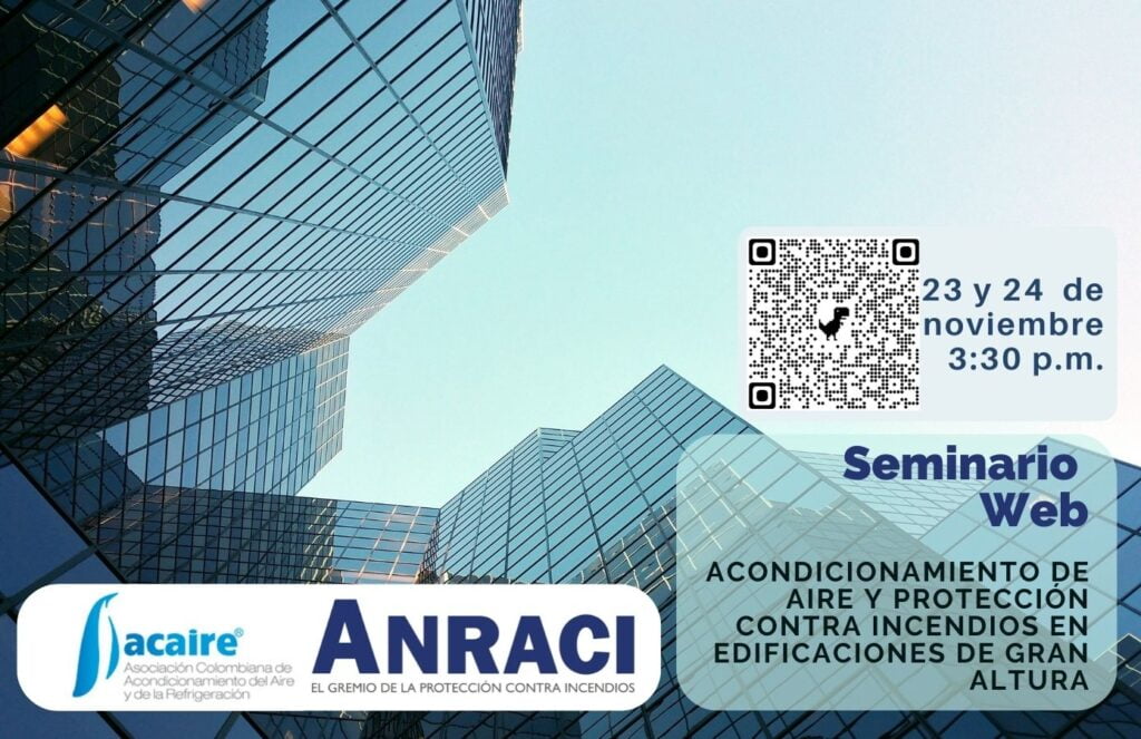 Acondicionamiento de Aire y Protección Contra Incendios en Edificaciones de Gran AlturaSeminario Web: Acondicionamiento de Aire y Protección Contra Incendios en edificios de gran altura.Acaire y Anraci desarrollaron el Seminario Web: Acondicionamiento de Aire y Protección Contra Incendios en edificios de gran altura, evento en el que se plantearon los siguientes objetivos:Identificar la normatividad y legislación aplicable al desarrollo de sistemas de Acondicionamiento de Aire y Protección Contra Incendios en edificios de gran altura.Presentar las buenas prácticas de ingeniería aplicables a los .sistemas de Acondicionamiento de Aire y Protección Contra Incendios en edificios de gran altura.Ilustrar el desarrollo de sistemas de Acondicionamiento de Aire y Protección Contra Incendios en edificios de gran altura a través de la casuística.Cuándo y Dónde.¿Cuándo?23 y 24 de noviembre de 2022.¿Dónde?Seminario Virtual, lo puedes ver en el lugar que sea más cómodo para ti!¿Cuál es el Horario?3.30 pm a 7.00 pm.Metodología.El Seminario se llevó a cabo en modalidad Virtual.El Seminario estuvo compuesto por una serie de conferencias, en las que se presentaron temas específicamente preparados y relacionados con el Acondicionamiento de Aire y la Protección Contra Incendios en edificios de gran altura.El Seminario se llevó a cabo durante 2 días, iniciando actividades a las 3.30 pm y terminando sobre las 7.00 pm.Esta fue una actividad abierta a la comunidad que se efectuó con la finalidad de ayudar en la conceptualización de la implementación de Sistemas de Acondicionamiento de Aire y Protección Contra Incendios en edificios de gran altura.Memorias.¿Te perdiste el evento o quieres repasar algún contenido?No te preocupes, todo el Seminario está disponible en video a través de nuestro canal de YouTube, de igual forma puedes verlo a continuación.Día 1. Día 2. Agenda Académica.El Seminario tuvo una intensidad de 7 horas, las cuales se dividieron en dos sesiones. Durante los dos días de duración del evento tuvimos conferencias con una duración de 40 minutos cada una de ellas.Te invitamos a conocer la programación del Seminario a continuación.23 de noviembre de 2022.InicioFinDuraciónActividadResponsable15:2015:3010 minIngreso a la plataformaAsistentes15:3015:4010 minBienvenida y presentación del Seminario.Acaire – Anraci.15:4016:2040 minNormatividad Colombiana aplicable al desarrollo de Sistemas HVAC en edificios de gran altura.Ing. Laura Silva – ACAIRE16:2016:255 minIntermedioAnraci.16:2517:0540 minSoportes de carga para Sistemas HVAC y Sistemas de Protección contra Incendios en edificios de gran altura.Ing. Luis Marquez – LOOS & CO – Anraci.17:0517:105 minIntermedioAnraci.17:1017:5040 minConsideraciones en el diseño de sistemas HVAC en edificios de gran altura.Ing. Laura Silva – ACAIRE17:5017:555 minIntermedioAnraci.17:5518:3540 minSistemas de ventilación y control de humos de Protección Contra Incendios en edificios de gran altura.Ing. Adrian Rodriguez – SODECA LATAM – Anraci.18:3518:405 minCierre de Actividades día 1.Anraci.24 de noviembre de 2022.InicioFinDuraciónActividadResponsable15:2015:3010 minIngreso a la plataformaAsistentes15:3015:4010 minBienvenida y presentación del Seminario.Acaire – Anraci.15:4016:2040 minBuenas prácticas de instalación de sistemas HVAC en edificios de gran altura.Ing. Giovanni Barletta – ACAIRE16:2016:255 minIntermedioAnraci.16:2517:0540 minSoluciones para Sistemas HVAC y RCI en edificios de grandes Alturas.Ing. Israel Ballonet e Ing. Luis Bonilla – VICTAULIC – Anraci.17:0517:105 minIntermedioAnraci.17:1017:5040 minSistemas especiales de HVAC que podrían ser aplicables a Edificios de Gran Altura.Ing. Andrés Hurtado – ACAIRE17:5017:555 minIntermedioAnraci.17:5518:3540 minAutomatización y Control de los Sistemas HVAC y Sistemas Contra Incendio aplicables a Edificios de Gran Altura.Ing. Juan Ignacio Bueno – Johnson Controls – Anraci.18:3518:405 minCierre del Seminario.Anraci.Nota: Agenda Académica sujeta a modificaciones por parte de la organización del evento sin previo aviso.Conferencistas.(En orden de programación)LAURA SILVAIngeniera Mecánica con más de 9 años de experiencia en Diseño Mecánico HVAC.Profesional especialidad en gerencia de proyectos y certificada en eficiencia energética ISO 51000:2018.Manejo de software HAP Carrier, Energy gauge, Summit, Trane trace 700.Manejo de software de modelamiento de Revit Autodesk MEP y AutoCAD.LUIS MARQUEZLATAM Regional Sales Manager de Loos & Co.Profesional en Ingeniería de Instrumentación y Control, especializado en Gerencia Comercial con énfasis en Ventas.ADRIAN CAMILO RODRÍGUEZ HERNÁNDEZIngeniero Mecánico de la Universidad de América.Ingeniero de soporte técnico de Sodeca Latam.Más de 8 años de experiencia en el sector de la Ventilación Mecánica.GIOVANNI BARLETTAIng. Mecánico, especialista en Gerencia de Empresas Comerciales, con más de 25 años de experiencia en el sector del aire acondicionado y la refrigeración. Ha participado en programas avanzados de capacitación en refrigeración y aire acondicionado con reconocidos fabricantes internacionales.Actualmente se desempeña como conferencista nacional e internacional, ha sido asesor y consultor de empresas y usuarios finales en aplicaciones en refrigeración y aire acondicionado.Conferencista distinguido ASHRAE 2008 – 2010 y 2021- 2023. Actual presidente de la Junta de Dirección General de ACAIRE.LUIS BONILLAIngeniero químico – University of Florida, USA – 2011.Experiencia de más de 10 años en la industria y en la construcción.Especialista de sistemas de red contra incendios en sistemas húmedos, sistemas especiales de Preacción/diluvio y sistemas de supresión de agentes híbridos de nitrógeno y agua pulverizada basados en la NFPA 770.Cargo actual: Victaulic Fire Protection SpecialistISRAEL BALLONETIngeniero Industrial con 10 años de experiencia en proyec